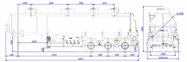 | Колесная база, мм | 5815+1360+1360 |