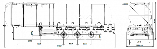 Конструкция цистерны SF3B28_1S_82, ССУ 1250, 1 отсек выполнена из низколегированной стали, либо из нержавеющей стали, самонесущей конструкции, предназначенная для перевозки и временного хранения темных нефтепродуктов (горячий битум, смолистые масла, мазут и пр.), транспортируется тягачом колесной формулой, 6х4 российского или иностранного производства. Общая масса брутто 31500 кг. Грузоподъемность 24700 кг. Корпус цистерны изготовлен из низколегированной стали и покрыт тепловой изоляцией (дополнительная опция) 150 мм, а также листом оцинкованной стали толщиной 0,8 мм либо из нержавеющей стали толщиной 0,8 мм. Модель: круглая форма, с заниженным центром тяжести. Высота ТС 3700 мм. Ширина 2550 мм. Нагрузка ССУ 9050 кг. Нагрузка на оси 22450 кг.