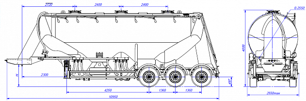 Муковоз SF3U39.3A_09, ССУ 1150, 3 отсека - это полуприцеп-цистерна, предназначенная для бестарной перевозки сыпучей пищевой продукции (зерновых культур, муки, отрубей, комбикорма, сахара, кормов, гранул и др.). Конструкция цистерны выполнена из алюминиевого сплава (Германия) в виде несущей емкости. Объем цистерны составляет 39000 м3. Муковоз SF3U39.3A_09 разделяется на 3 отсека. Транспортируется тягачом колесной формулой – 4х2 российского или иностранного производства. Количество изолированных отсеков – 1 (емкость может быть разделена внутренними перегородками на 5 (пять) герметичных отсека для перевозки различных сортов груза с индивидуальной выгрузкой. Общая длина 10,95 м. Высота 4 метра. Ширина 2,55 м. Колесная база 6550+1360+1360.