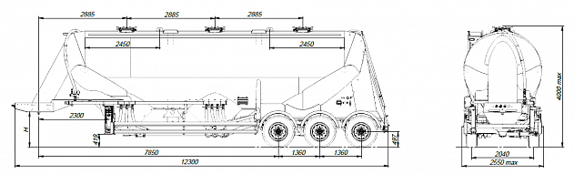 Муковоз SF3U48_3A_12 ССУ 1150, 3 отсека - это полуприцеп-цистерна, предназначенная для бестарной перевозки сыпучей пищевой продукции (зерновых культур, муки, отрубей, комбикорма, сахара, кормов, гранул и др.). Конструкция цистерны выполнена из алюминиевого сплава (Германия) в виде несущей емкости. Объем цистерны составляет 45,5 м3. Муковоз SF3U48_3A_12 разделяется на 3 отсека. Транспортируется тягачом колесной формулой – 4х2 российского или иностранного производства. Количество изолированных отсеков – 1 (емкость может быть разделена внутренними перегородками на 5 (пять) герметичных отсека для перевозки различных сортов груза с индивидуальной выгрузкой. Расстояние между осями 1360 мм. Колеса 385/65R22,5; 6+1. Общая масса 34650 кг. Нагрузка ССУ 12200 кг.