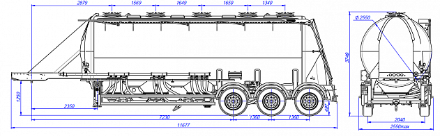Муковоз SF3U41_5S_01 ССУ 1350, 5 отсеков - это полуприцеп-цистерна, предназначенная для бестарной перевозки сыпучей пищевой продукции (зерновых культур, муки, отрубей, комбикорма, сахара, кормов, гранул и др.). Конструкция цистерны выполнена из низколегированной стали. Объем цистерны составляет 39,5 м3. Муковоз SF3U41_5S_01 разделяется на 5 отсеков. Транспортируется тягачом колесной формулой – 4х2 российского или иностранного производства. Количество изолированных отсеков – 1 (емкость может быть разделена внутренними перегородками на 3 (Три) герметичных отсека для перевозки различных сортов груза с индивидуальной выгрузкой). Общая длина 11,7 м. Высота 3,8 м. Ширина 2,55 м. Колесная база 7230+1360+1360. Нагрузка на оси 25320 кг.